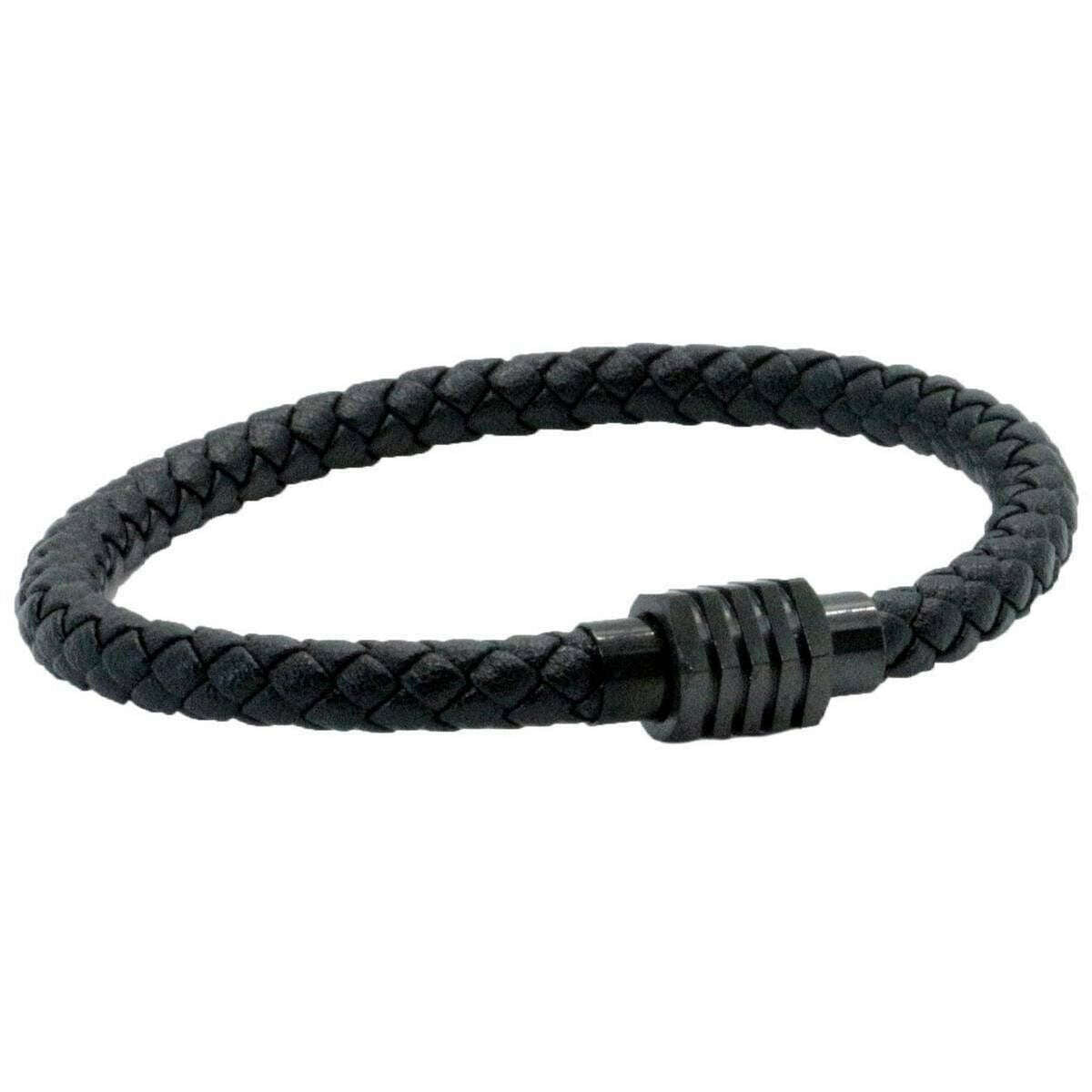 Black Ribbed Clasp Leather Bracelet