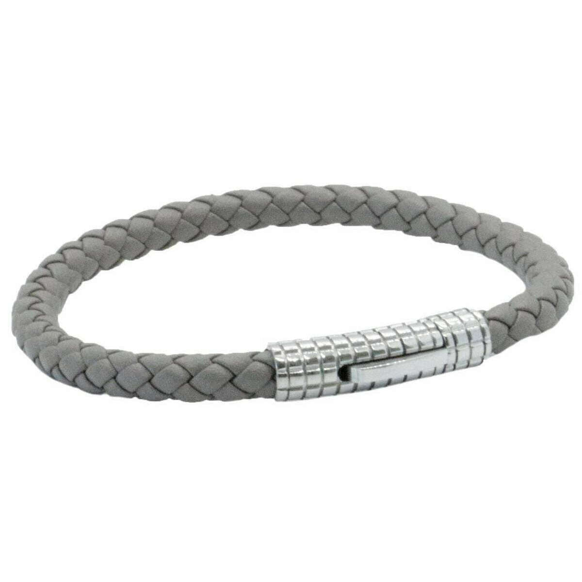 This David Van Hagen men's taupe grey ribbed clasp bracelet has been crafted with 100% leather for a sleek and sophisticated look. Complete with a David Van Hagen gift bag, this stylish yet striking accessory measures at a diameter of 21.5cm perfect for most men s wrists with an added amount of space for a comfortable non-restrictive fit. To top it all off this bracelet is lightweight and features a gorgeous clasp that is easy to put on and take off.