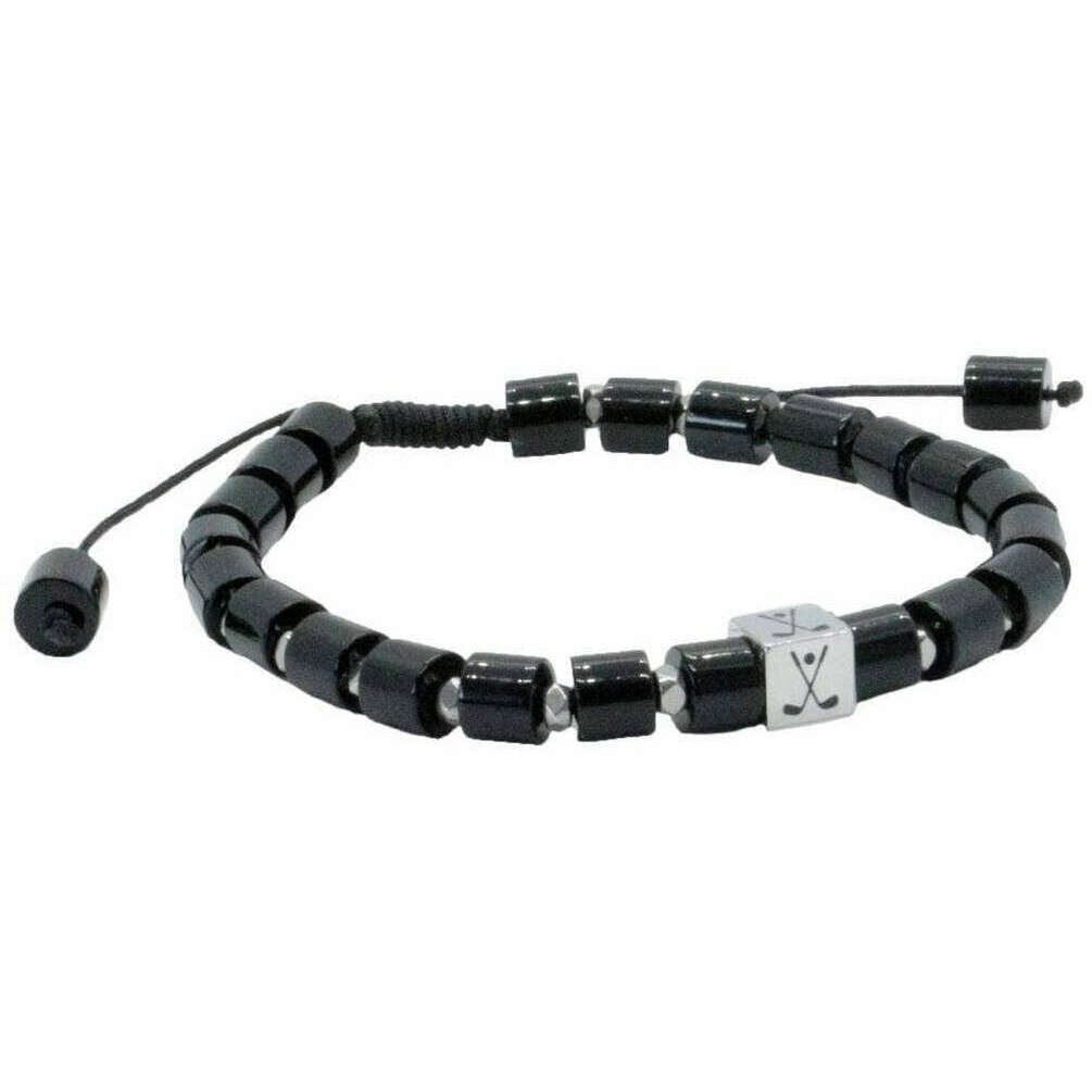 Finished in a David Van Hagen gift bag is the men's pheasant bead agate bracelet that comes in black with silver accents. This bracelet is fully adjustable at the back to fit all gentleman's wrist or to have a customised fit whether that is tight or loose. This beaded bracelet is an ideal accessory for any man looking to add a personalised and contemporary look to his attire with the centrepiece golf detailing.