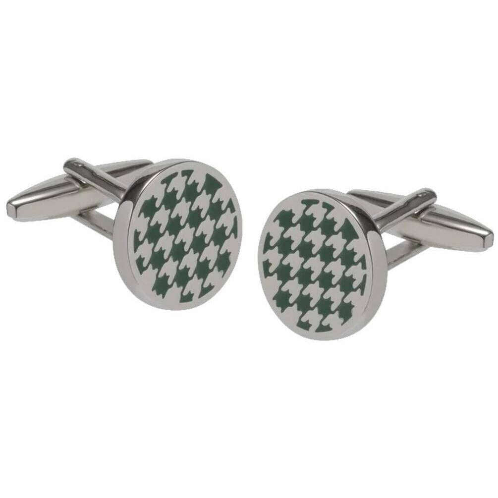• Houndstooth Pattern , Green Background , Standard Cufflink Bascule