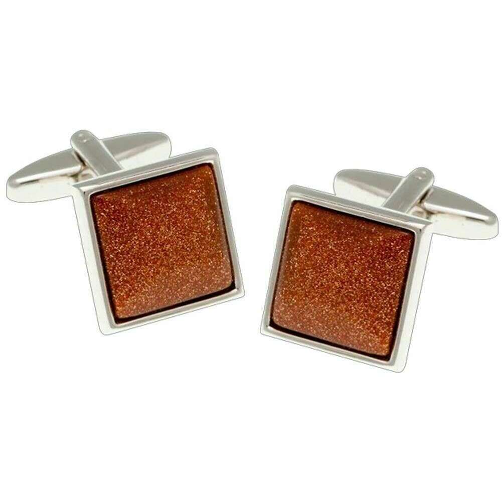 • Cabochon Semi-Precious Brown Goldstone , Strong Polished Edges , Standard Cufflink Bascule