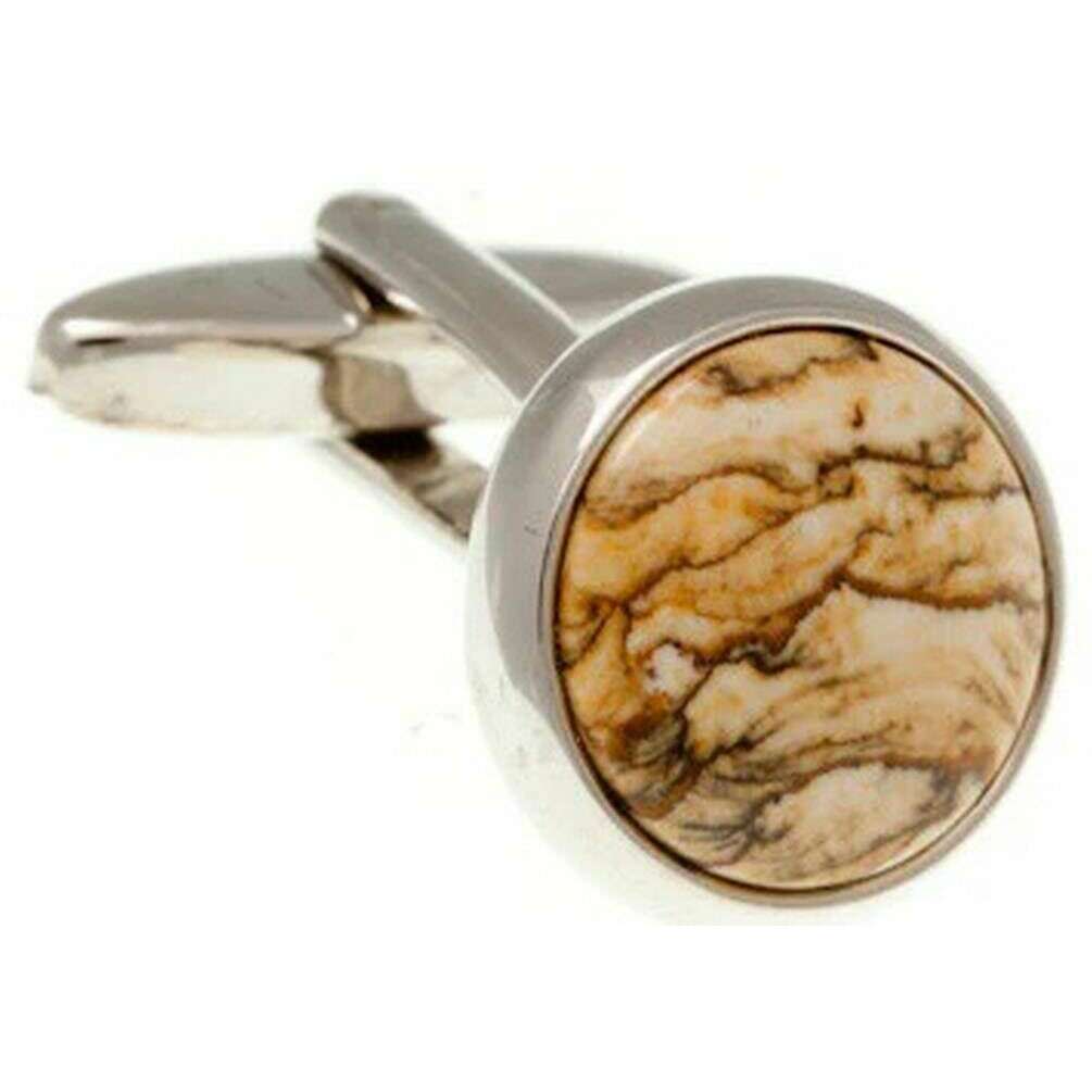 • Cabochon Semi-Precious Jasper Stone , Polished Edges , Standard Cufflink Bascule