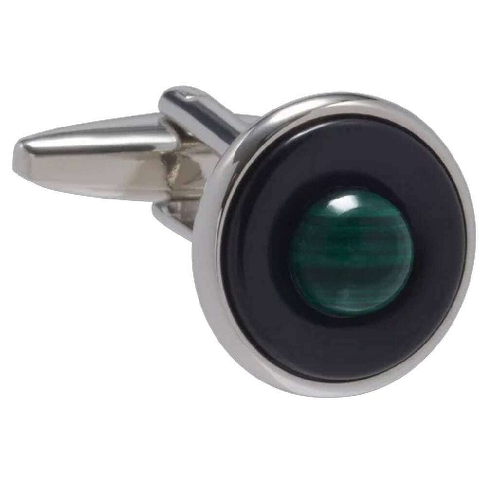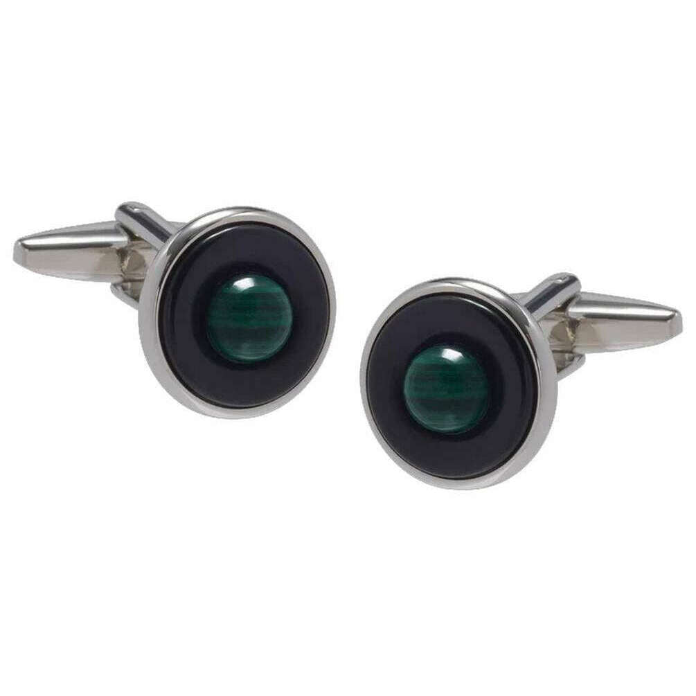 • Inspired by Rings of Saturn , Green Malachite Cabochon Centre , Onyx Stone Middle , Natural Semi-Precious Stones , Standard Cufflink Bascule